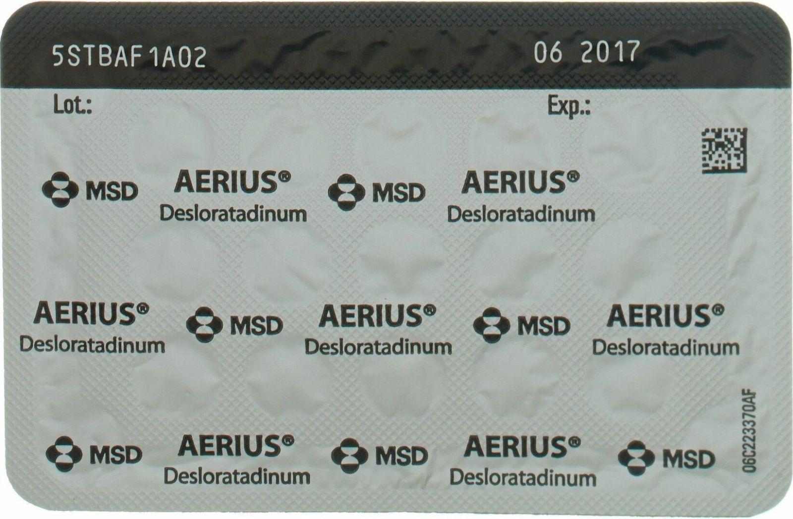 Todas las presentaciones excepto el frasco de 150. Aerius è un medicinale con obbligo di ricetta medica. Aerius è un medicinale antistaminico a base di desloratadina commercializzato dalla casa farmaceutica MSD Italia Srl.